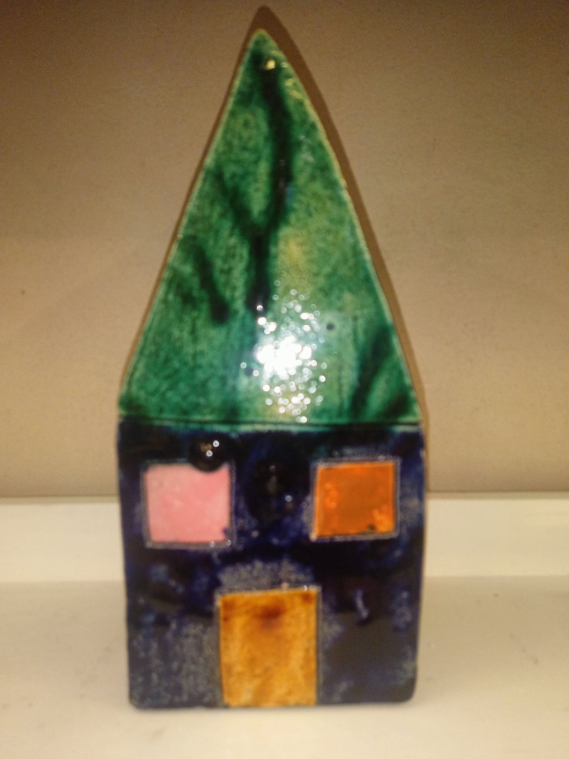 Opera tridimensionale realizzata con smalti su ceramica. La scultura in oggetto è un'attività artistica progettata a produrre forme in volume. Dimensioni: altezza 34cm, larghezza 15cm, profondità 13cm