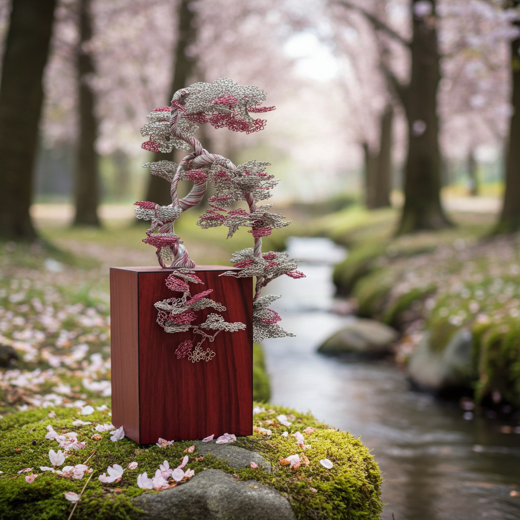 Scultura in legno e alluminio. Dimensioni dell'opera base 17.5cm x 17.5cm, altezza 60cm.