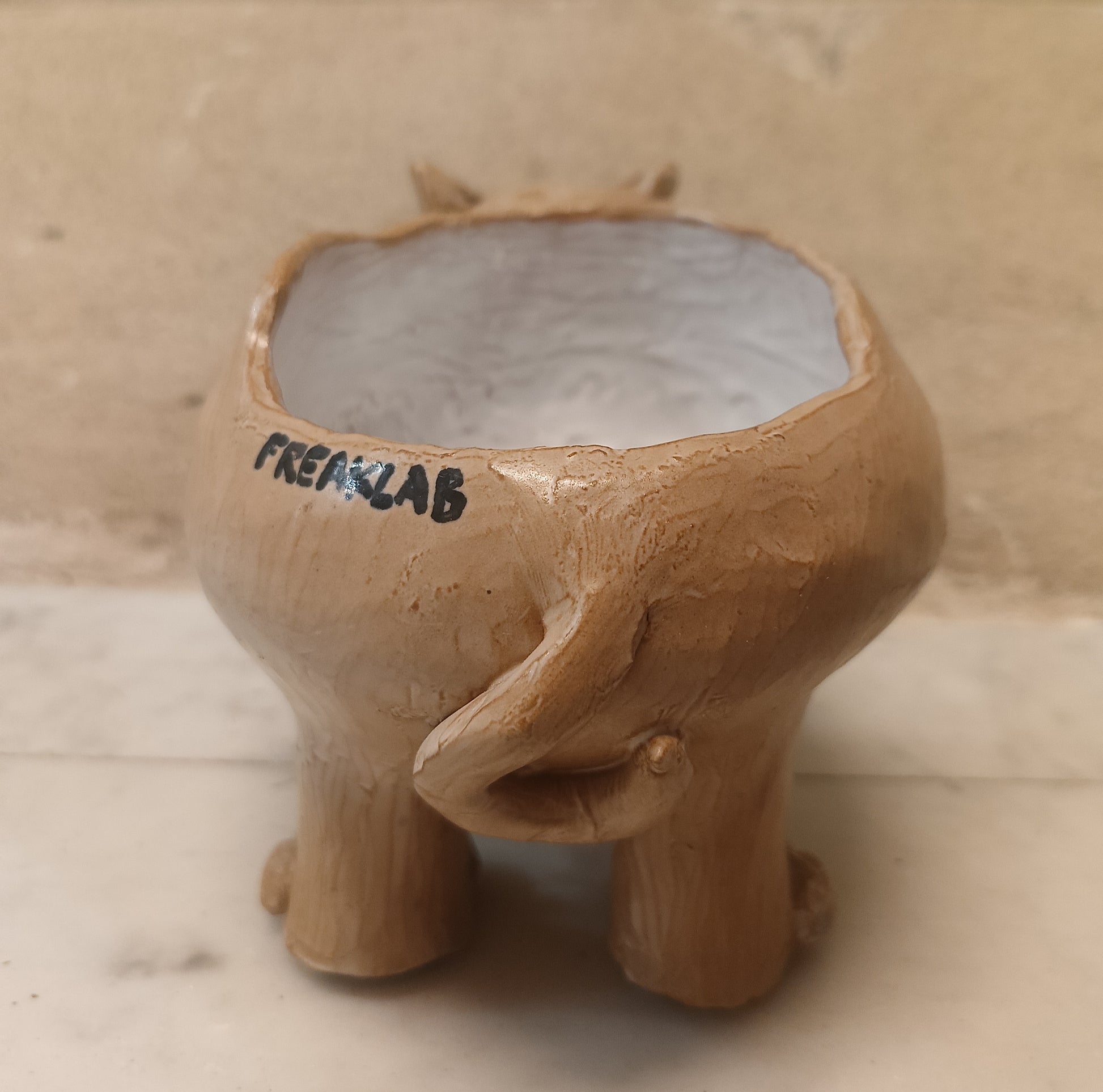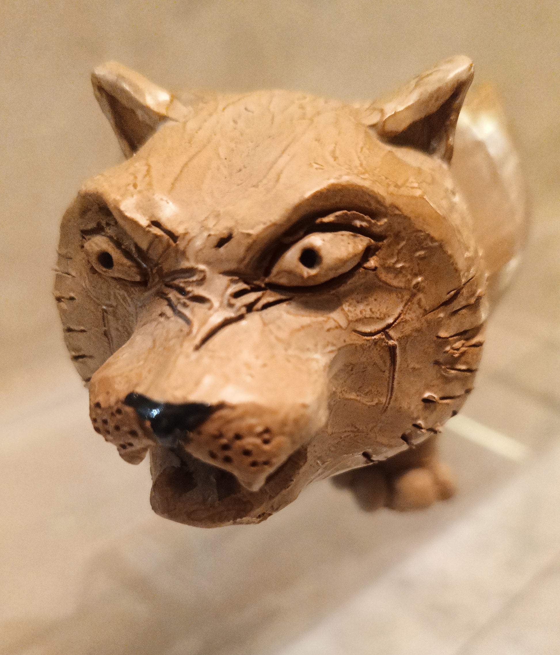 Scultura unica in terracotta patinata con colori acrilii, prodotta interamente a mano senza uso di forme o calchi. Dimensioni dell'opera altezza 12cm, larghezza 12,5cm, profondità 22cm