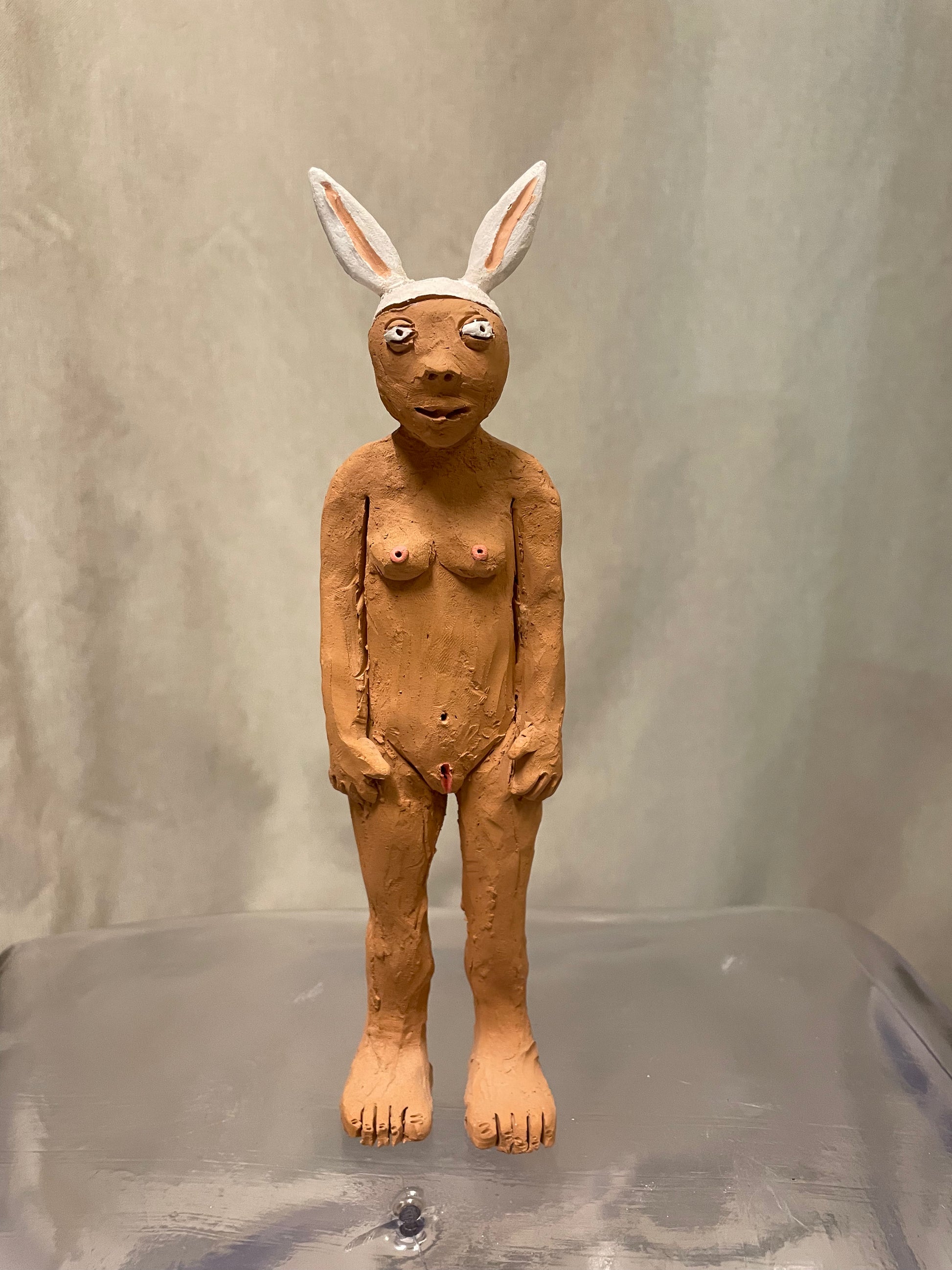 Scultura unica in terracotta, prodotta interamente a mano senza uso di forme o calchi. Dimensione dell’opera: altezza 24 cm larghezza 6 cm profondità 4 cm