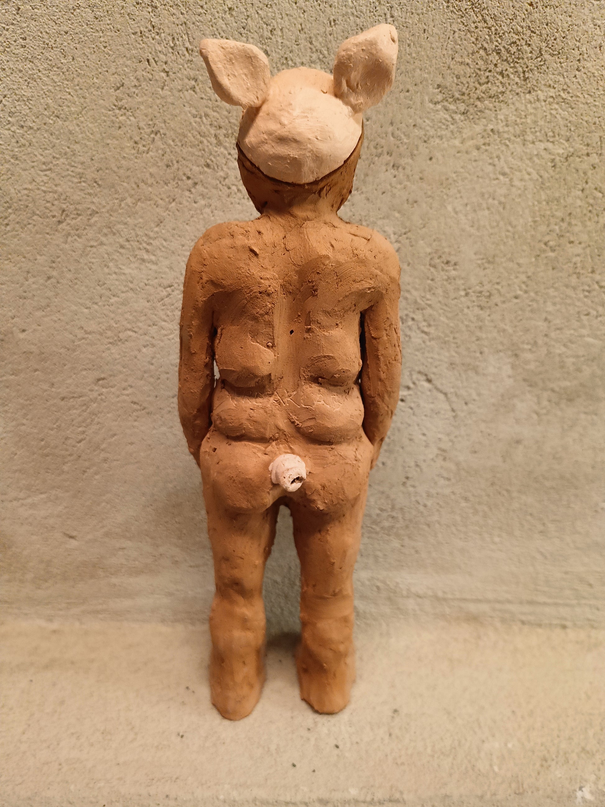 Scultura unica in terracotta, prodotta interamente a mano senza uso di forme o calchi. Dimensioni dell'opera altezza 22cm larghezza 7cm profondità 5cm