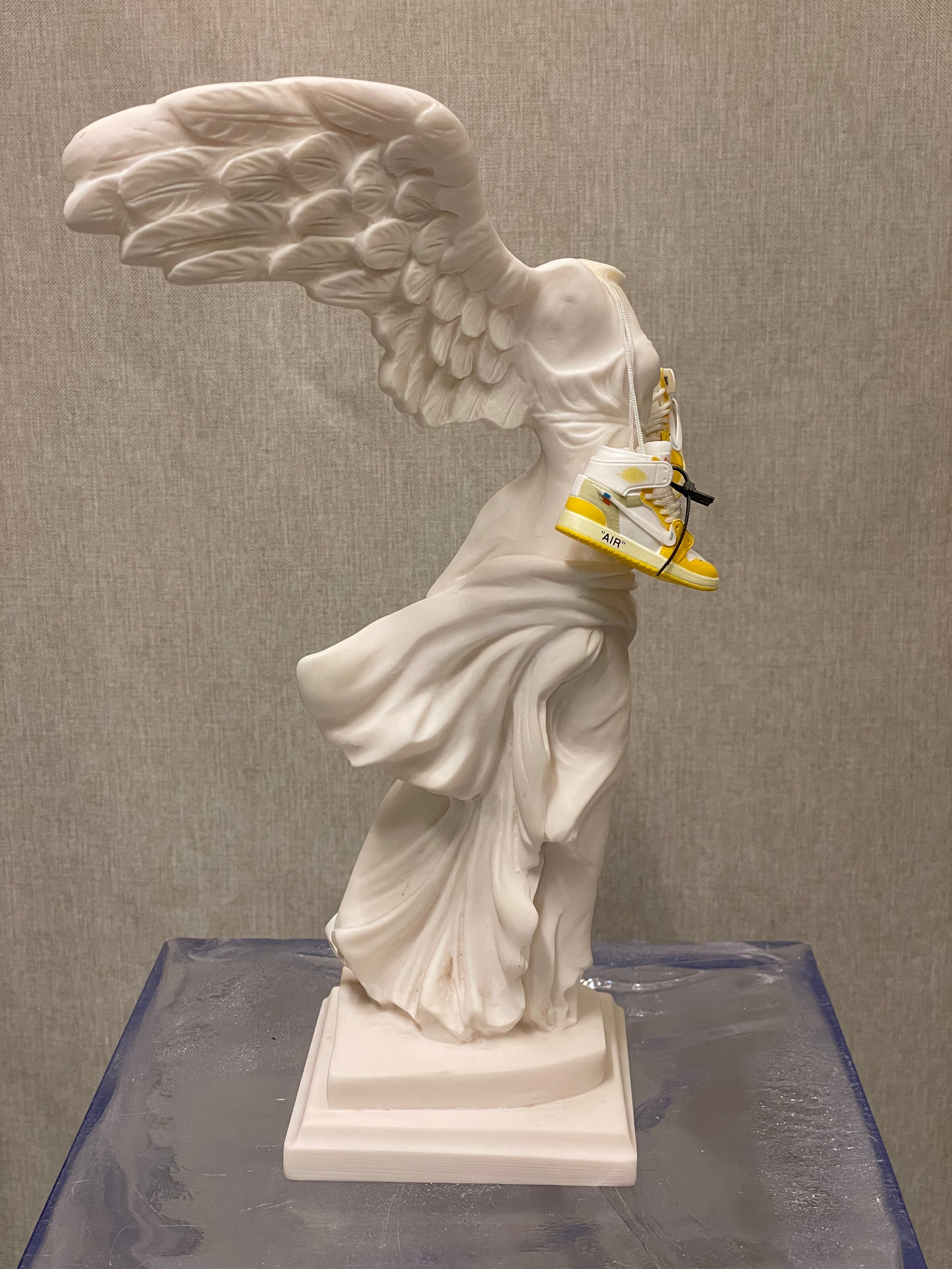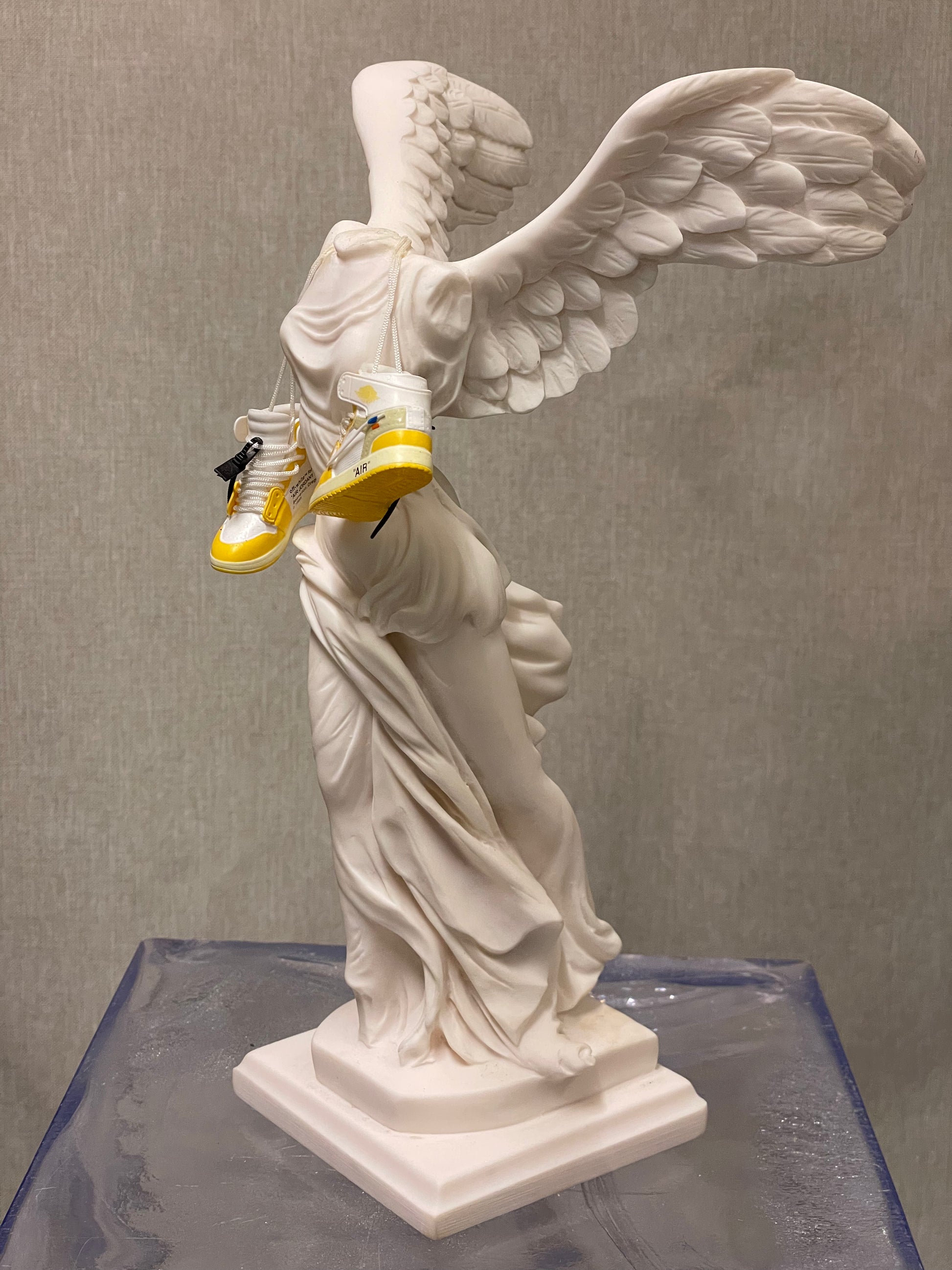 16/50. Scultura realizzata in 50 esemplari in resina. Ogni esemplare della tiratura si contraddistingue per modello e colorazione del paio di scarpe. Firmata a mano. Altezza 28,5cm.