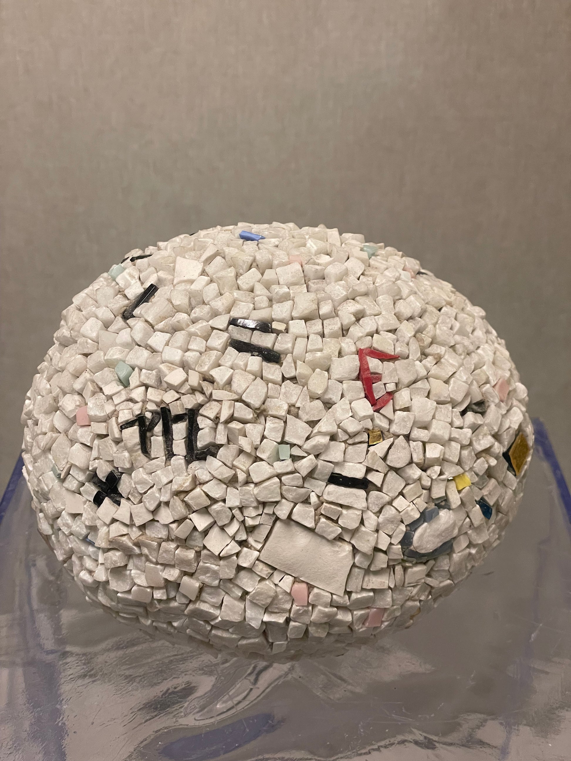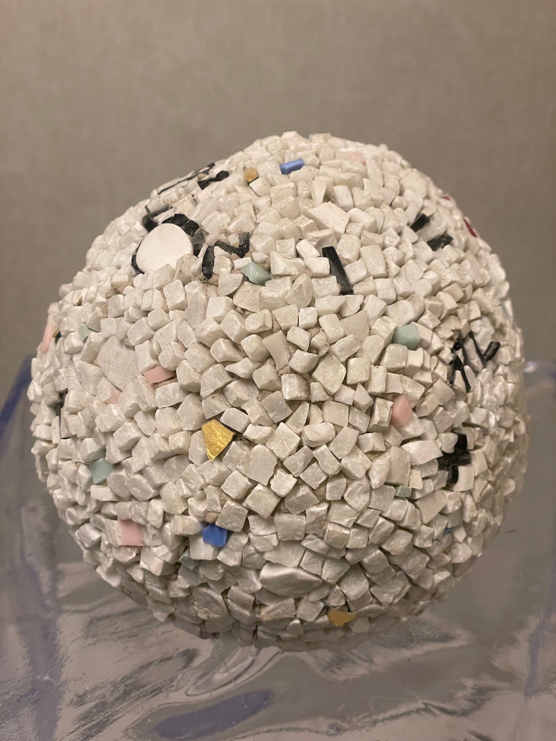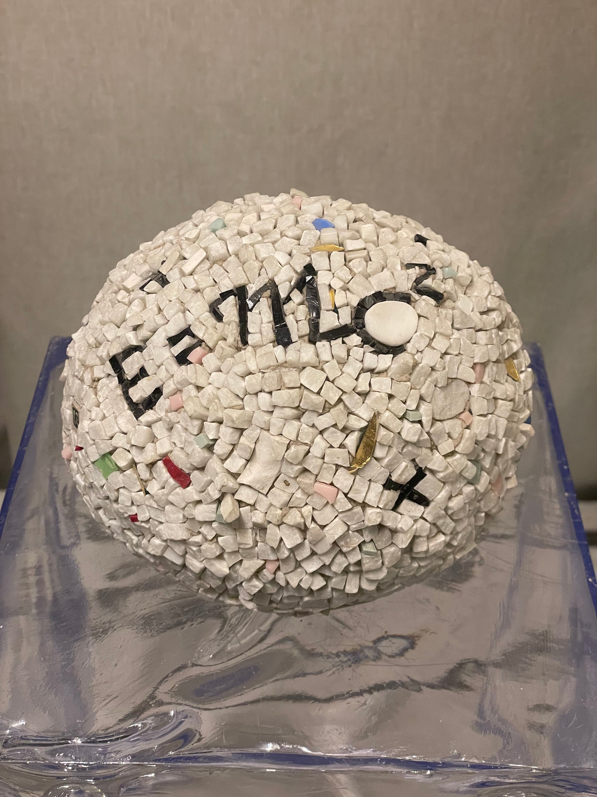 Opera realizzata in mosaico contemporaneo con marmo, smalti veneziani e vetro. Dimensioni dell'opera altezza 14cm, larghezza 16cm, profondità 15cm.