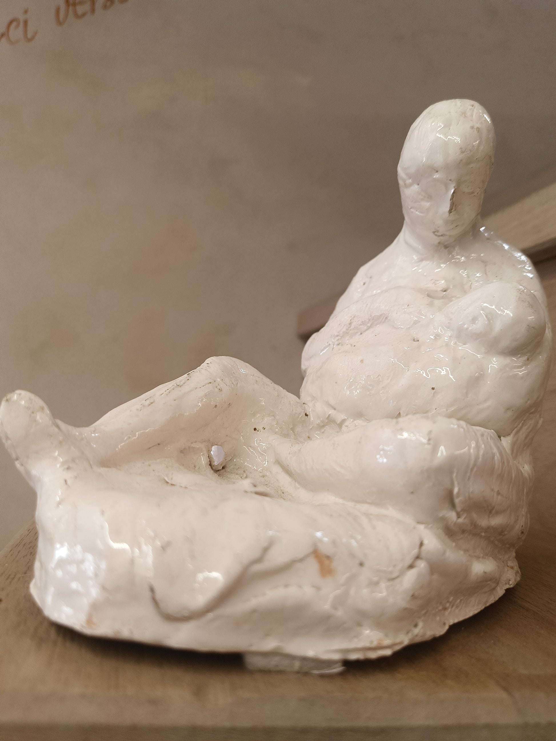 Anno 1991. Scultura realizzata in ceramica e smalto. Dimensioni dell'opera altezza 18cm, larghezza 11cm, profondità 19cm.