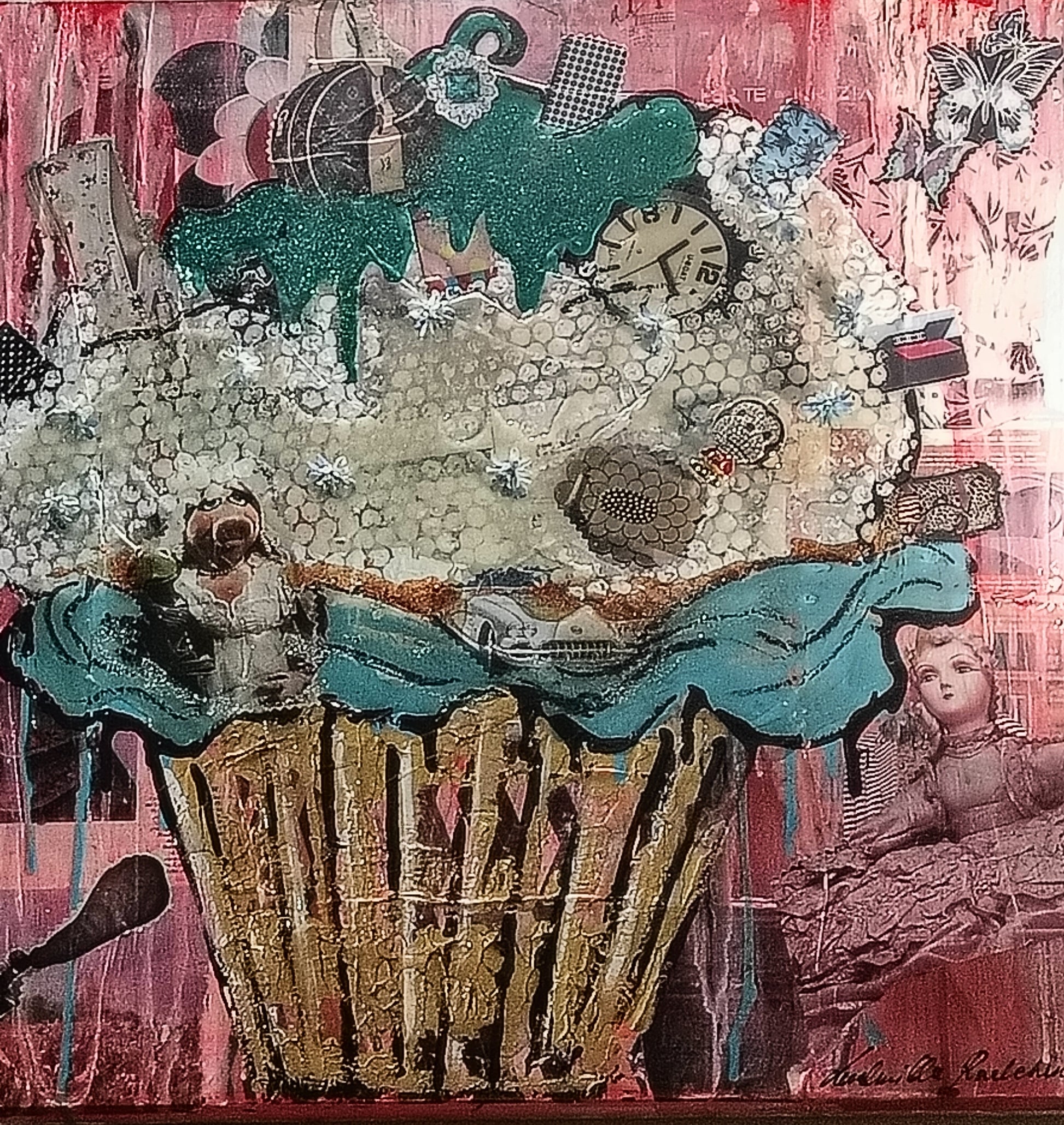 Quadro in tecnica mista. Dimensioni opera 60cm x 60cm.